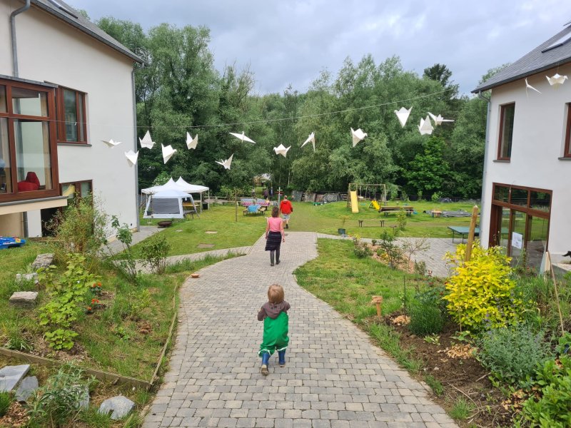 L’habitat groupé de Tangissart – qui cherche toujours un nom – est composé de 10 unités, une joyeuse bande intergénérationnelle de 1 à 71 ans, 19 adultes et 15 enfants qui tente, à sa petite échelle, de construire un lieu convivial, solidaire et écologique pour créer d’autres possibles (gestion d’un potager collectif, accueil de personnes fragilisées, fêtes des voisin.es,…).
